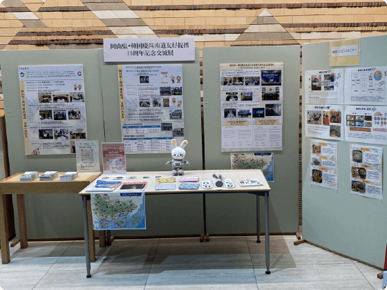 岡山県と友好交流協定を結んでいる韓国・慶尚南道との交流の歩みをご紹介しています。パネル展示では、これまでの交流の様子や取組内容をわかりやすくご紹介しております。